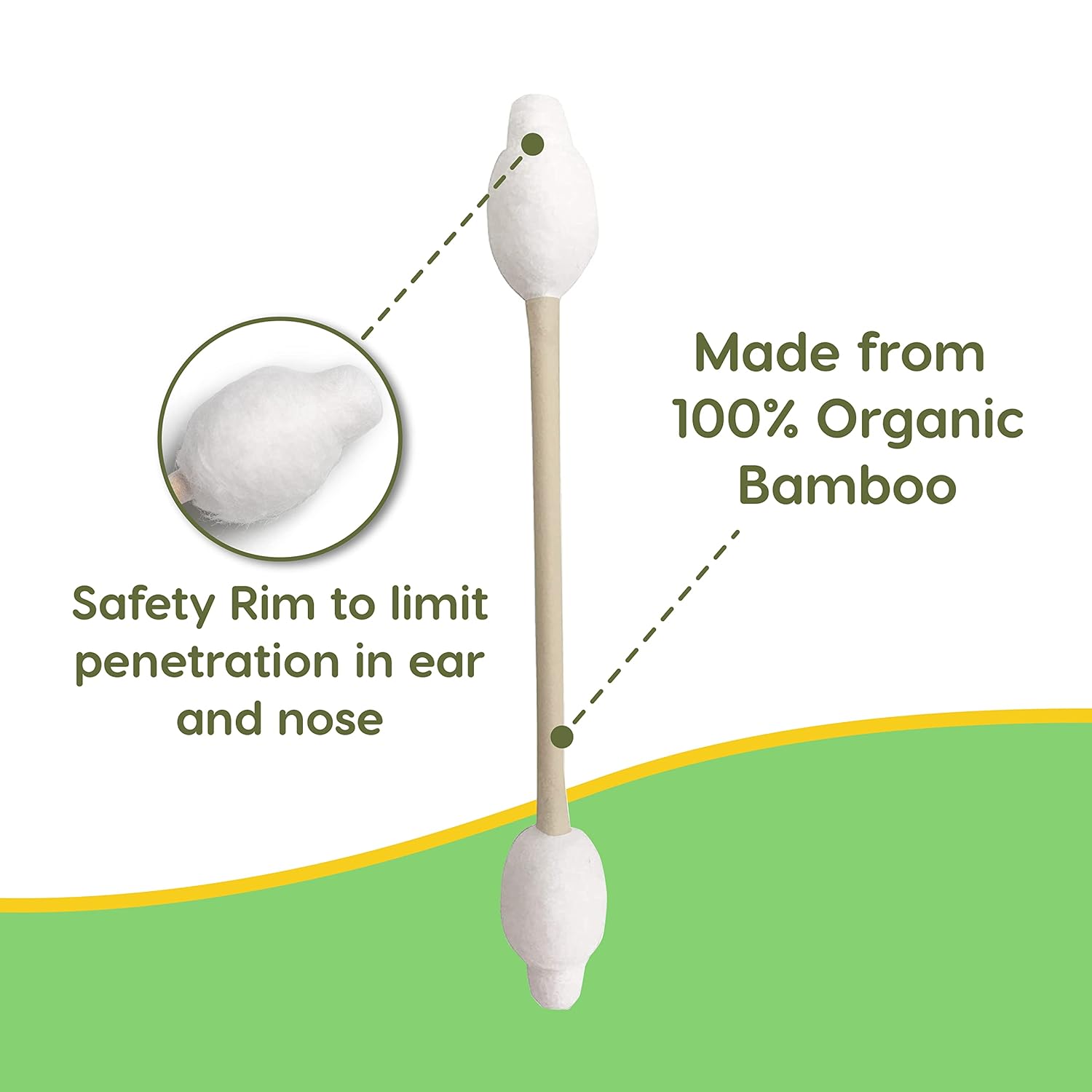 Baby Cotton Swabs 220 Count | Biodegradable & Organic Wooden Cotton Buds | Double Tipped Safety Ear Sticks | 100% Eco-Friendly & Natural | Perfect for Removing Toddler’s Ear Wax