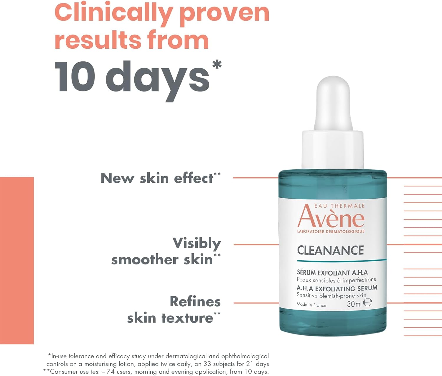 Eau Thermale Avène Cleanance AHA Exfoliating Serum 30ml – Serum for Acne-Prone skin, Fragrance-Free Formula