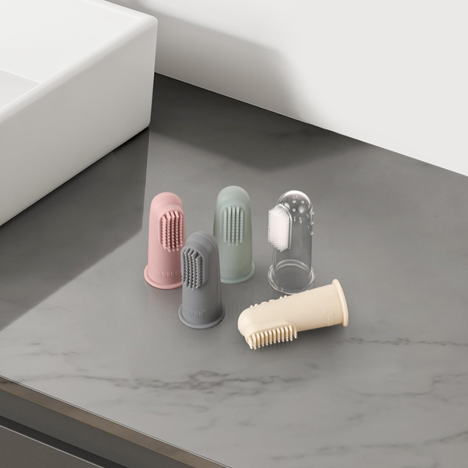 haakaa Baby First Toothbrush, Silicone Baby Finger Toothbrush Oral Care for Infants, Babies&Toddlers&Kids Tooth Care, Soft Food Grade Silicone, 0 Months+, 2 Pack, Cream