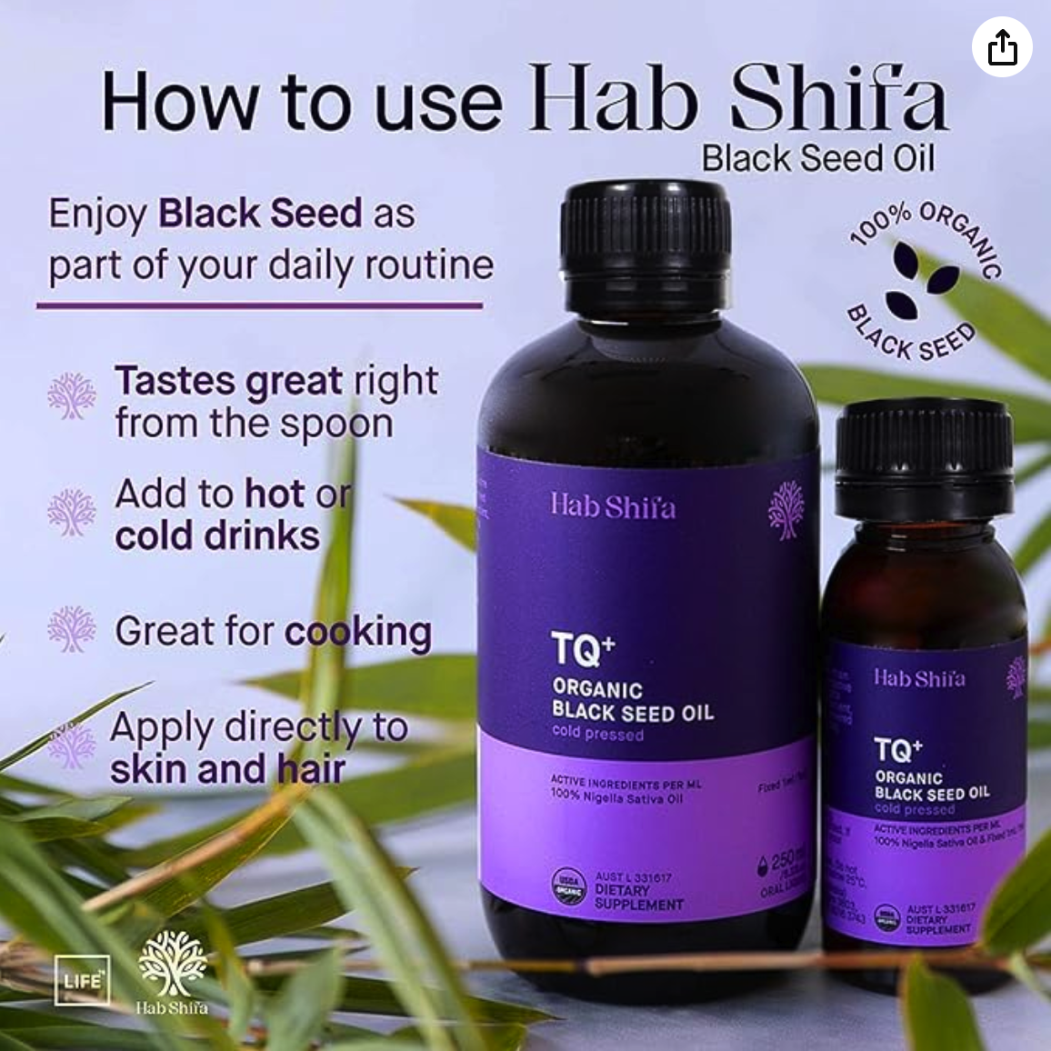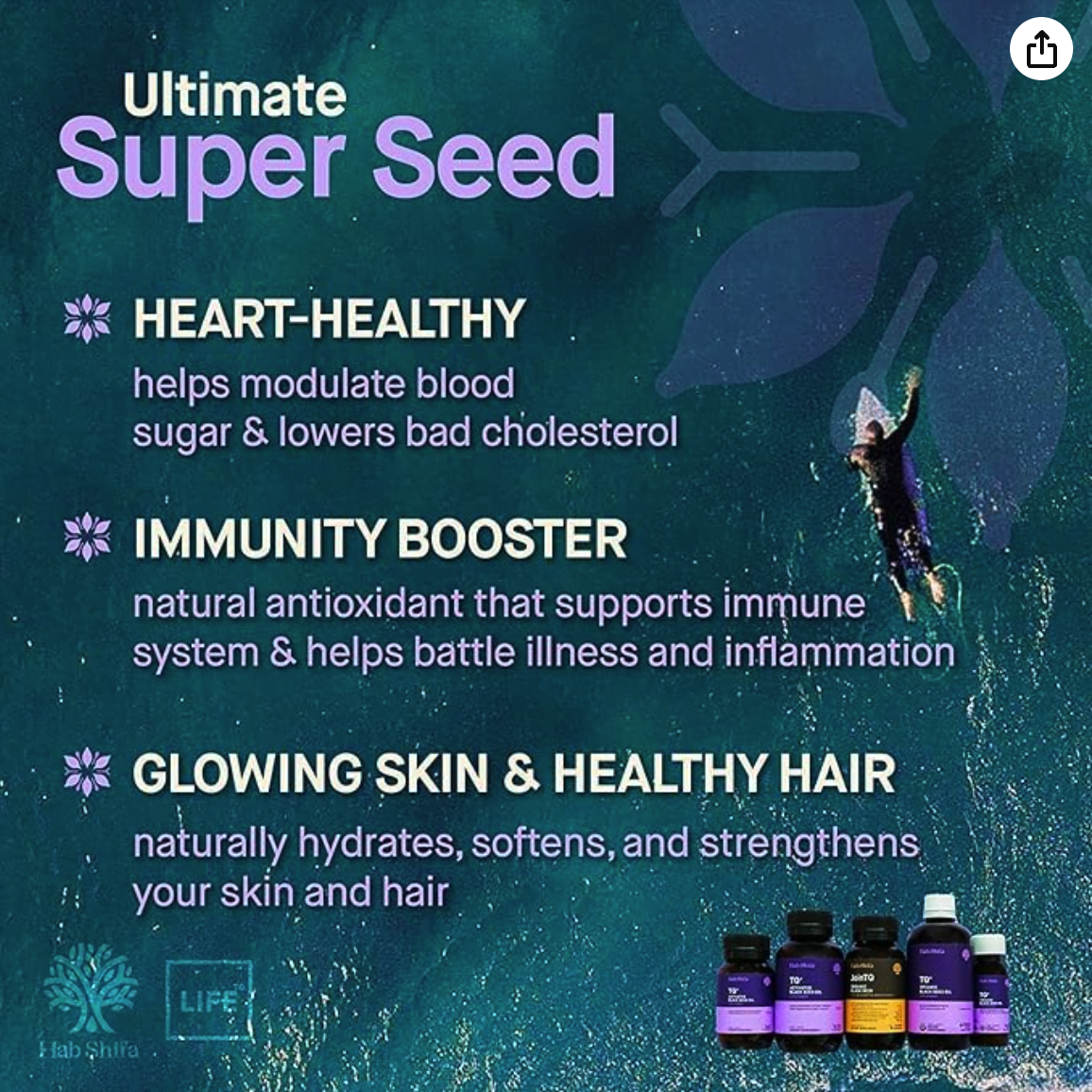 Be the first to review “Hab Shifa Black Seed Oil | ACO Certified Organic | 100% Pure Cold Pressed Black Cumin Nigella Sativa oil | Heart-Healthy immune Support | Healthy Skin & Hair | Non-GMO, Vegan | Omega 3 6 9” Cancel reply