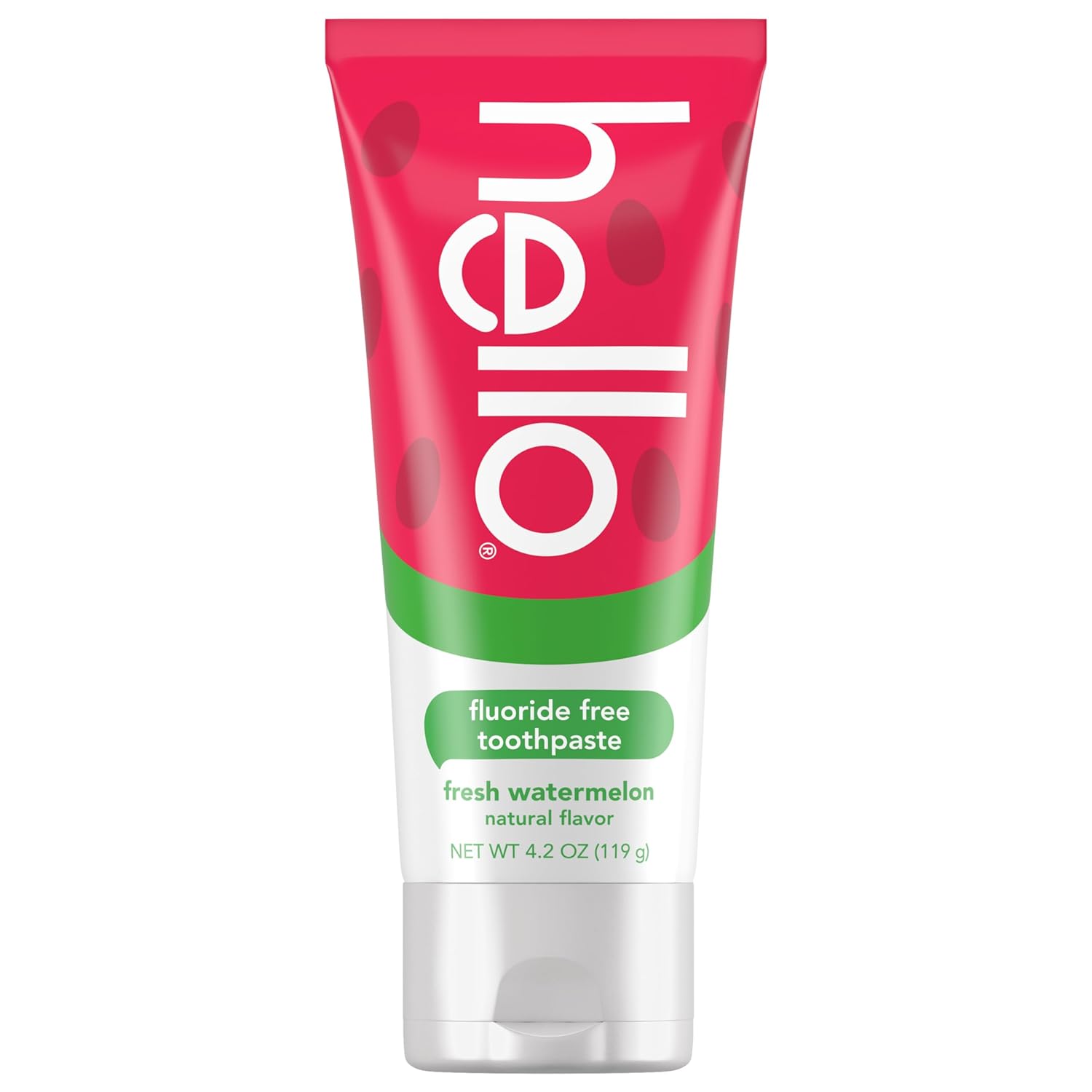 About this item this fluoride free toothpaste is thoughtfully formulated with natural flavor, helps remove plaque with regular brushing, and tastes awesome. hello kids watermelon toothpaste is free from SLS, artificial sweeteners, dyes, artificial flavors, parabens, fluoride, and gluten. hello is vegan and not tested on animals (leaping bunny certified). choose friendly!